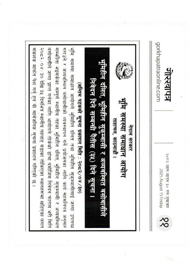 अन्तिम पटकका लागि पैतिस (३५) दिने सूचना प्रकाशन भएको बारे ।