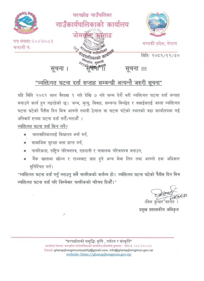 Info@gharapjhongmun.gov.np, gharapjhongrmunicpality@gmail.com