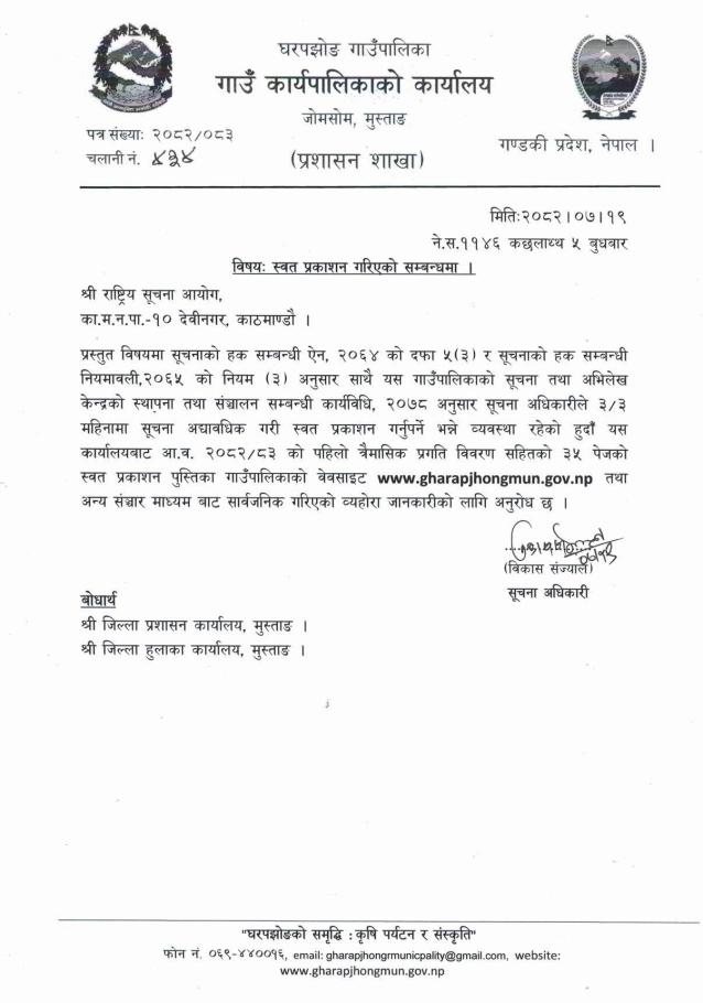 सूचनाको हक सम्बन्धी प्रथम चौमासिक २०८२/८३ को प्रकाशित