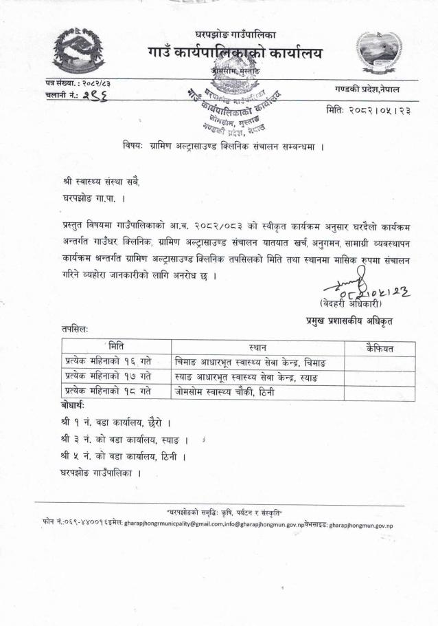 ग्रामीण अल्ट्रासाउण्ड क्लिनिक सञ्चालन सम्बन्धमा ।