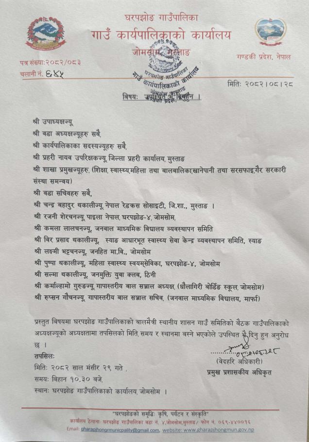 बालमैत्री स्थानीय शासनको गाउँ समितिको बैठकमा उपस्थित भै दिनुहुन ।